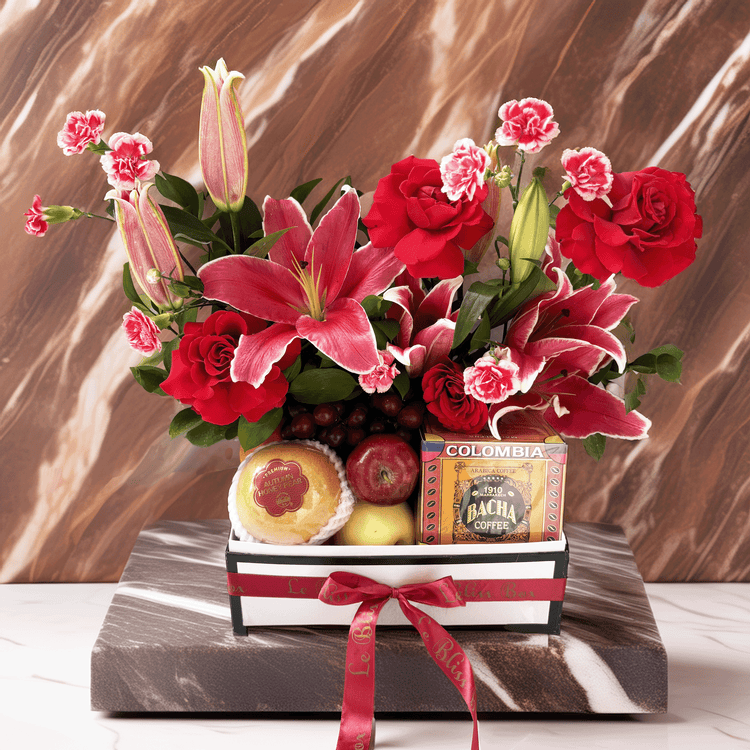 Bacha Coffee Fruit Red Lily Rose Hamper
