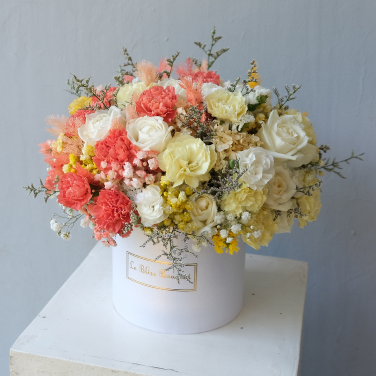 This Petite Fresh Bloombox offers a 360-degree view, ensuring a delightful display from every angle. Say no to flat flowers and embrace the fullness of this arrangement, perfect for decorating your table or gifting on any occasion.