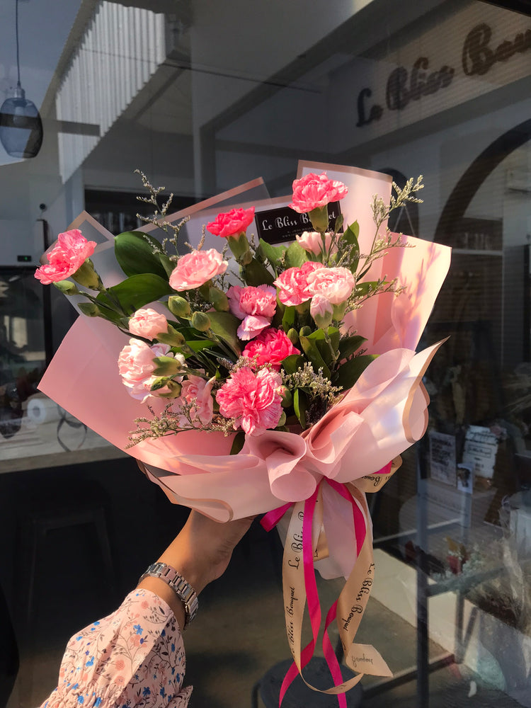 Introducing the Carnation Spray Smallie Bouquet by Le Bliss Bouquet: A delightful arrangement of petite carnations, carefully curated to bring elegance and charm to any occasion.