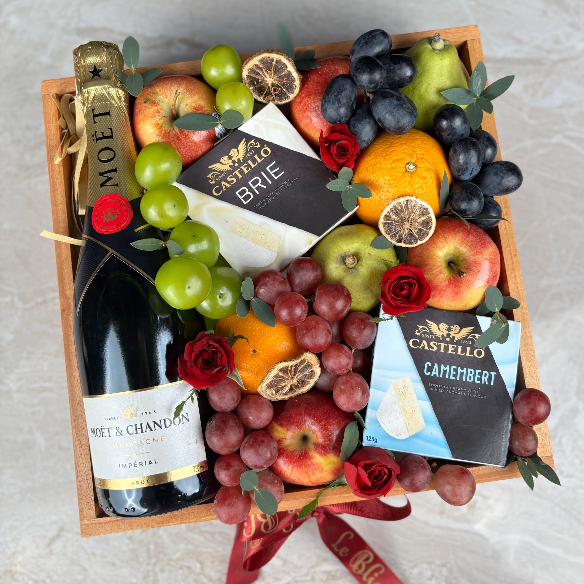 - 1 brie cheese, 1 camembert cheese, fresh import fruits (apple 4, pear 2, orange 2, 600g grapes