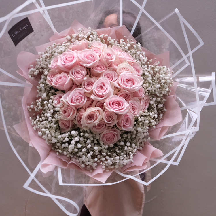 Introducing our enchanting "Classic Rose and Baby's breath Bouquet" – a symphony of 50 roses in a captivating blend surrounded by delicate Ecuador Baby's Breath. Perfect for any occasion, this bouquet promises timeless beauty and elegance. Elevate your gifting experience with this stunning arrangement. Order now and let the blossoming romance speak for itself!