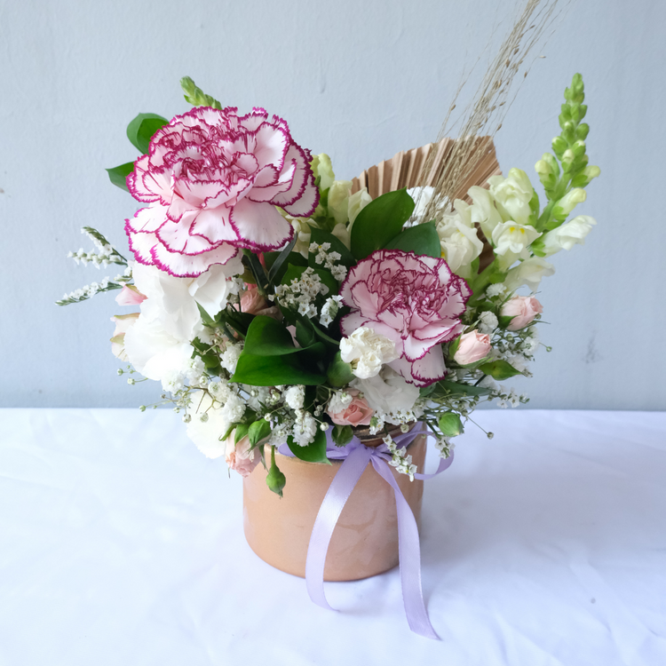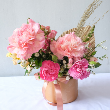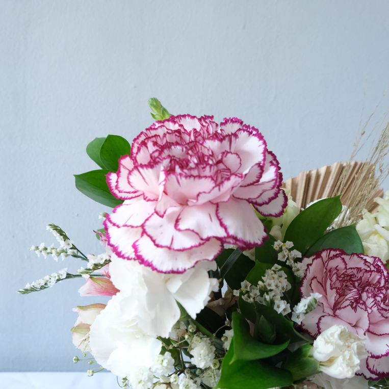 Shop Le Bliss Bouquet presents the Fresh Carnation Petite Jar, a delightful blend of vibrant carnations beautifully arranged to brighten any space.