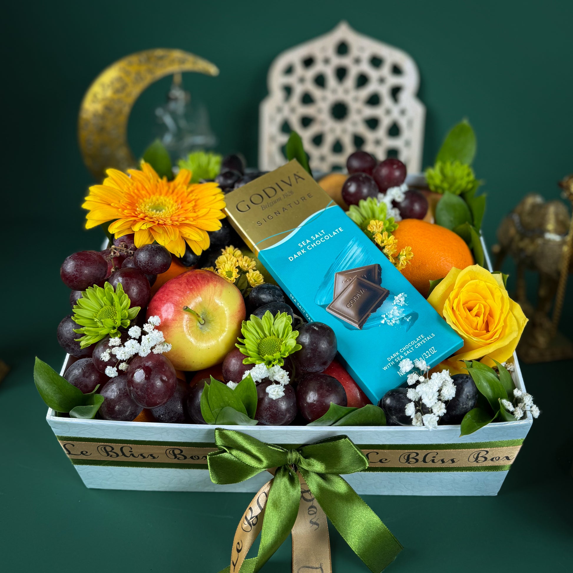 - NOTE: Due to seasonal availability, some fruits and flowers may vary. Substitutions will be made with equal or higher value items.