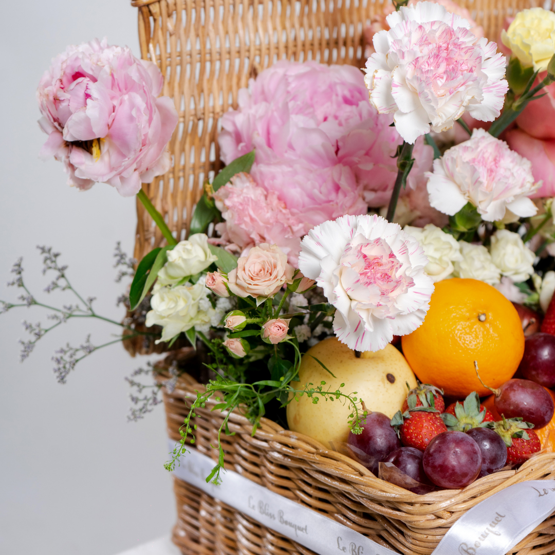 - Seasonal fresh flowers and 16-18 assorted imported fruits