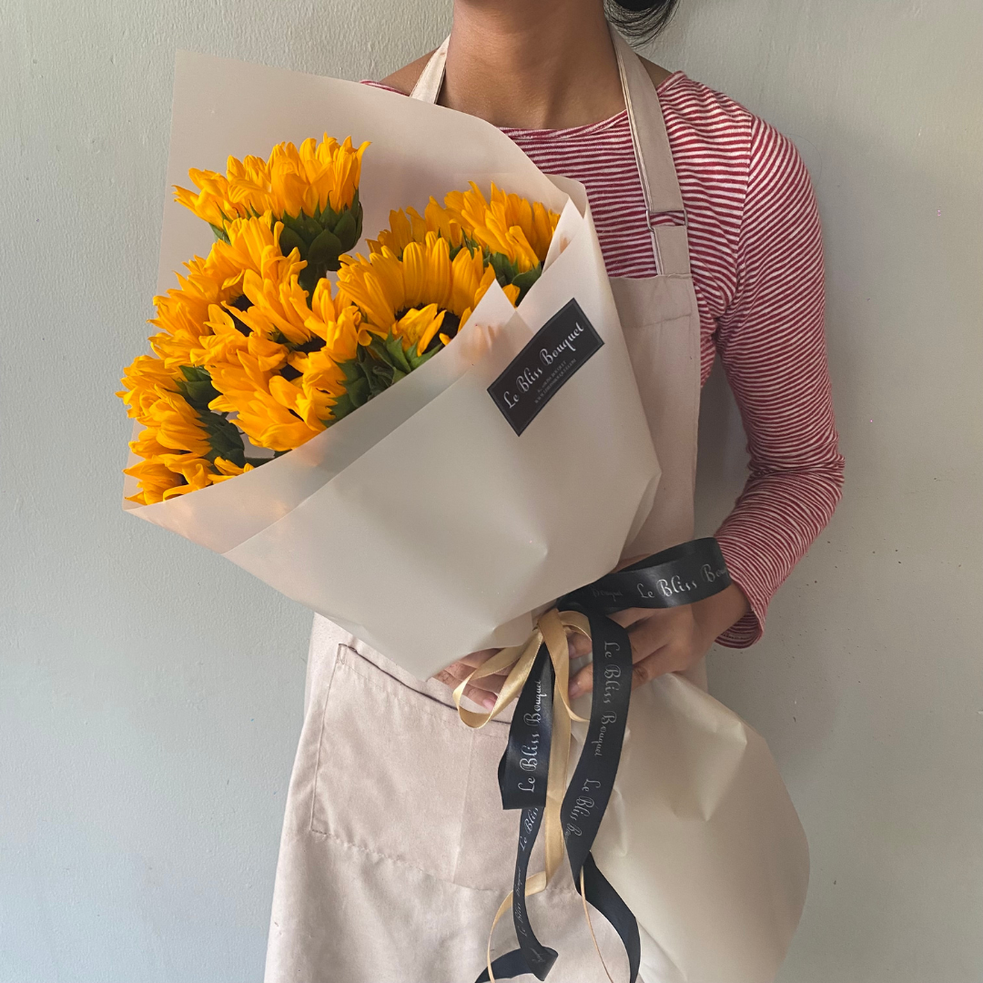 Elevate your moments with the Holland Sunflower Bouquet by Le Bliss Bouquet. Immerse yourself in the radiance of premium fresh flowers expertly arranged by our skilled florists. This bouquet features 10 stems of imported Holland sunflowers, bringing a touch of vibrant beauty to any occasion.
