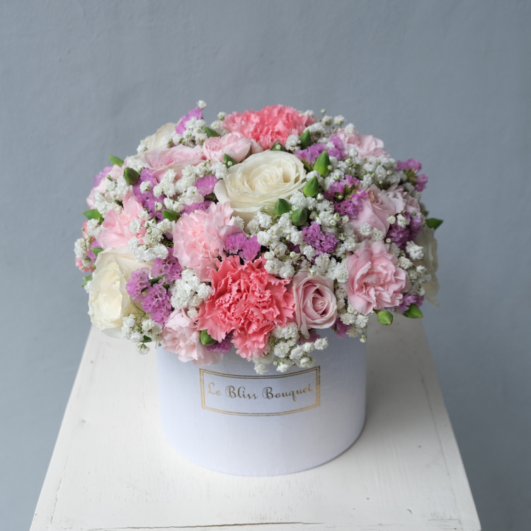 Discover the enchantment of our Mixed Petite Bloombox – a delightful combination of baby's breath, roses, and carnations.