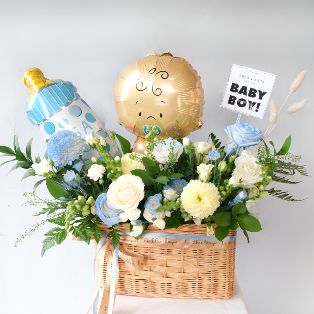 Berikan hadiah yang tak terlupakan untuk bayi laki-laki yang baru lahir dengan Newborn Baby Boy Gift in Rattan dari Le Bliss Bouquet. Paket spesial ini menampilkan rangkaian bunga elegan dalam keranjang rotan berkualitas, menciptakan kesan mewah dan lembut untuk menyambut kelahiran si kecil. Cocok sebagai hadiah untuk teman atau keluarga yang baru saja dikaruniai bayi. Kami menyediakan pengiriman cepat dan aman ke berbagai wilayah seperti Cirebon, Bintaro, Tangerang, dan Jakarta. Hadiah ini adalah pilihan sempurna untuk merayakan momen bahagia lahirnya sang buah hati.