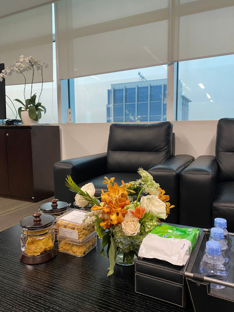 perfect for coffee table at the office. small vase. main flowers: mixed flowers