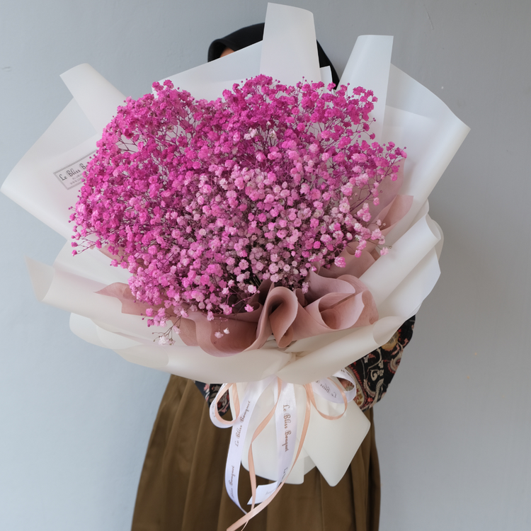 - Fresh flowers arrangement: 8 stem Pink Dyed Babysbreath