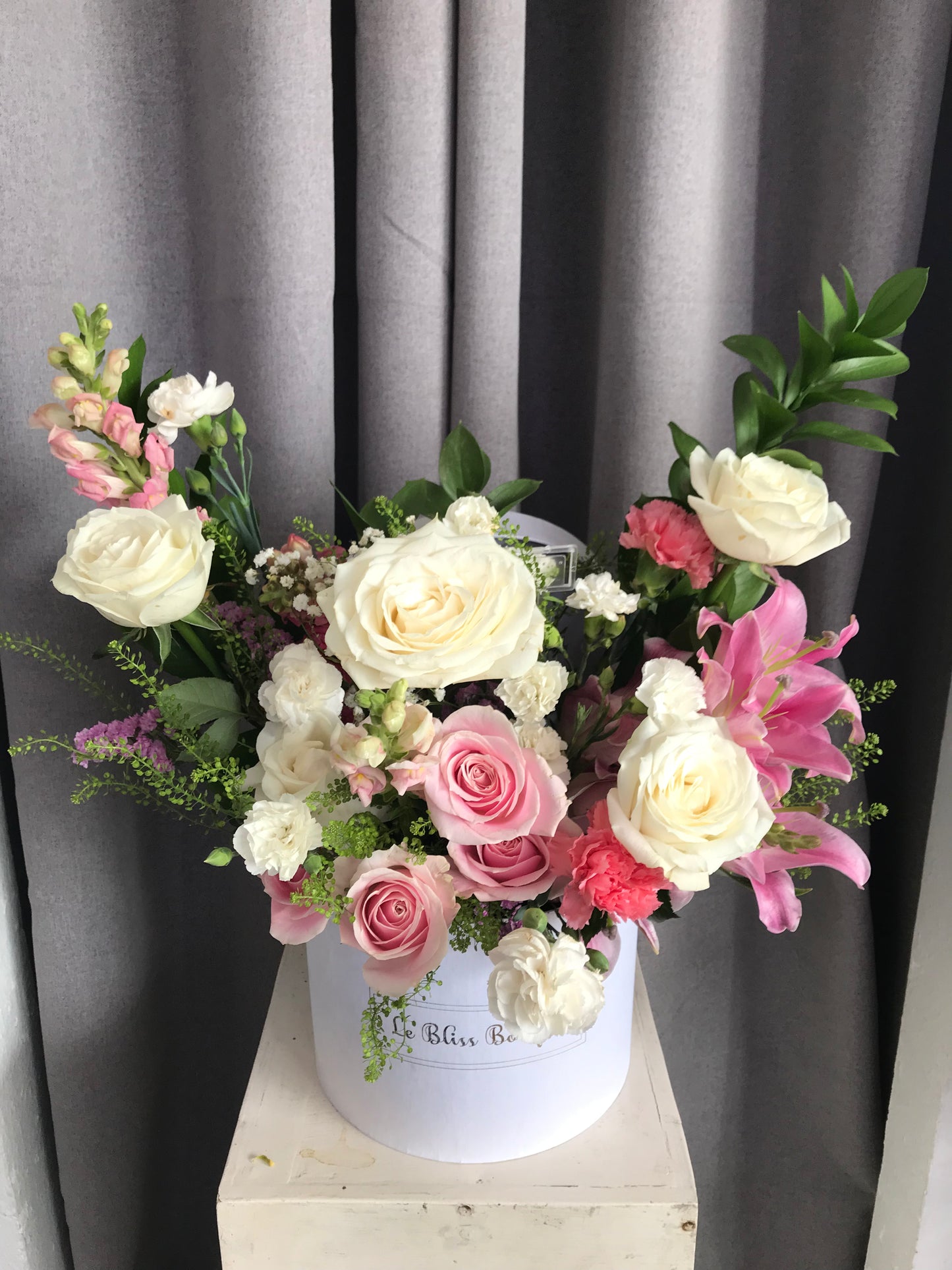 • fresh flowers: lily, roses, carnation, snapdragon, other fillers and foliages