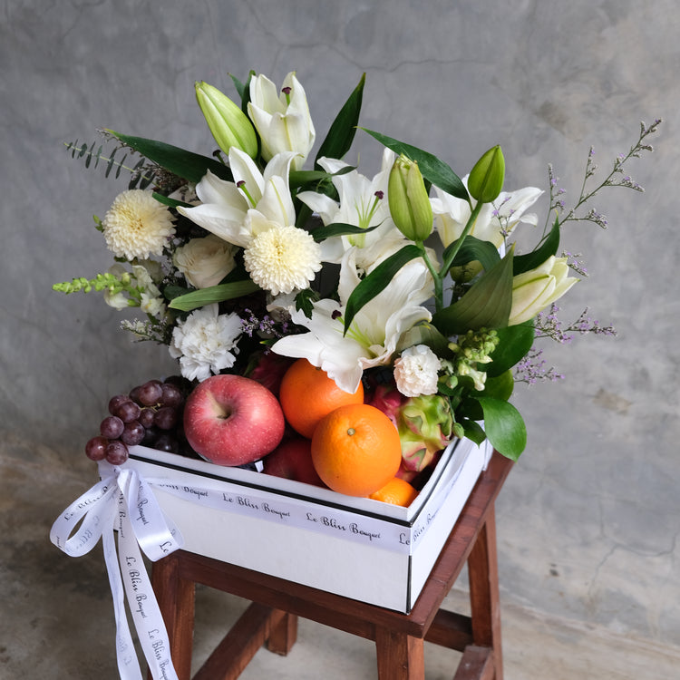 Make their day with our fresh lily & fruit combo. Perfect for gifting or personal enjoyment, this parcel brings together nature's finest in a delightful and elegant package.