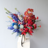 - consist of fresh flowers: cymbidium red, carnation, rose red, lily, delphinium, mums, and other fillers