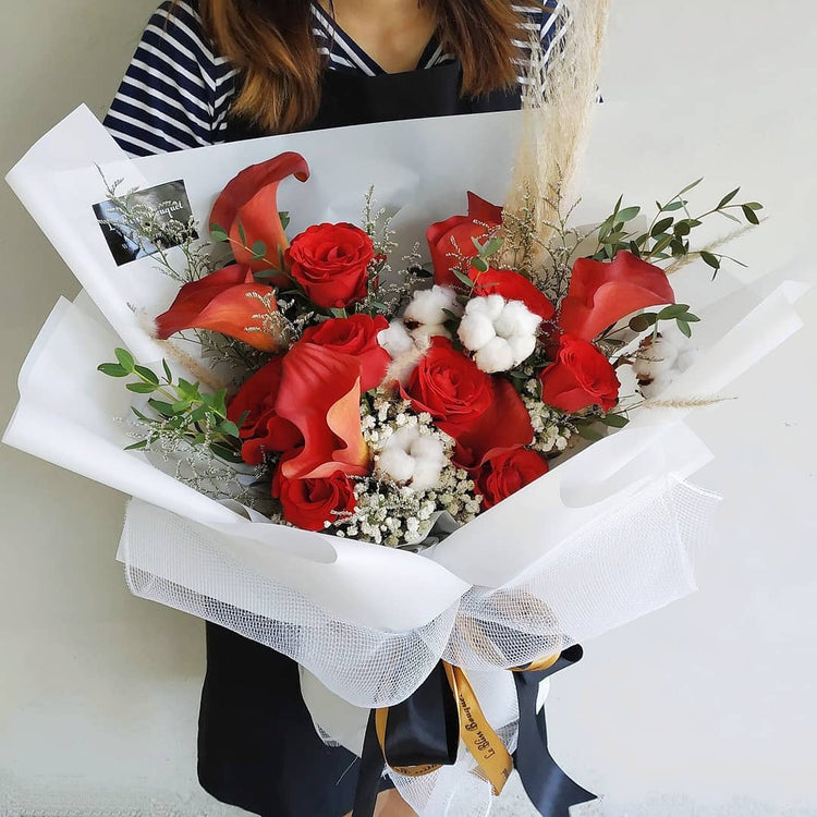 - Main flowers: Red Calla Lily, Sexy Red Rose, Cotton Flower