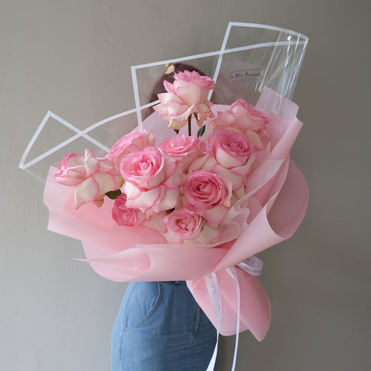 Experience the enchanting beauty of our Rose Esperance Bouquet by Le Bliss Bouquet. The Esperance Rose, symbolizing hope, graces this arrangement with its bicolor elegance—featuring light lime green guard petals and a precious star-like bloom. Imported from Ecuador, these roses offer a dense and long-lasting display, making them perfect for any occasion.