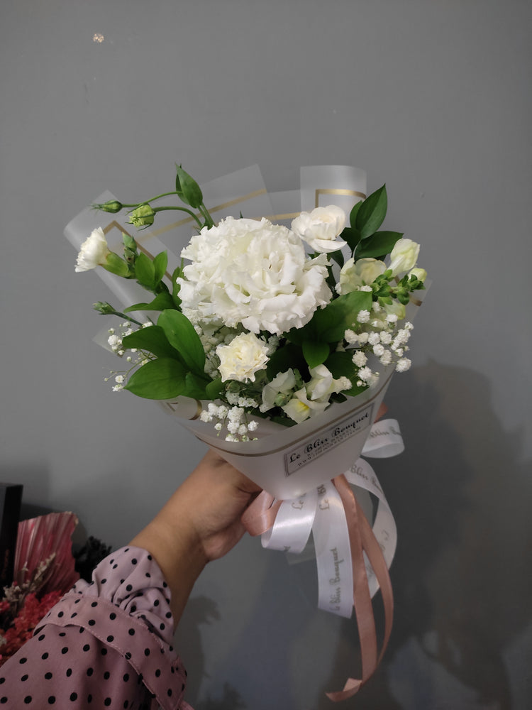 Shop Le Bliss Bouquet presents a stunning Single Lisianthus Bouquet, ideal for any occasion. This exquisite arrangement features Lisianthus sourced from China, exuding elegance and charm to elevate your special moments.