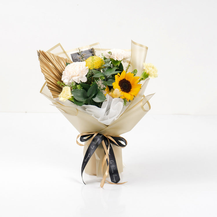 Introducing Sunflower Nationwide Bouquet: A stunning arrangement featuring a mix of imported and semi-imported fresh flowers, meticulously crafted to brighten any occasion. With dimensions measuring approximately P 35 x L25 x T37, it's the perfect gift for your special someone. Enjoy nationwide shipping to all cities across Indonesia. Plus, receive a complimentary greeting card with every purchase. Shop now at Le Bliss Bouquet!