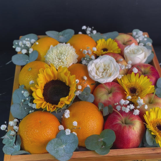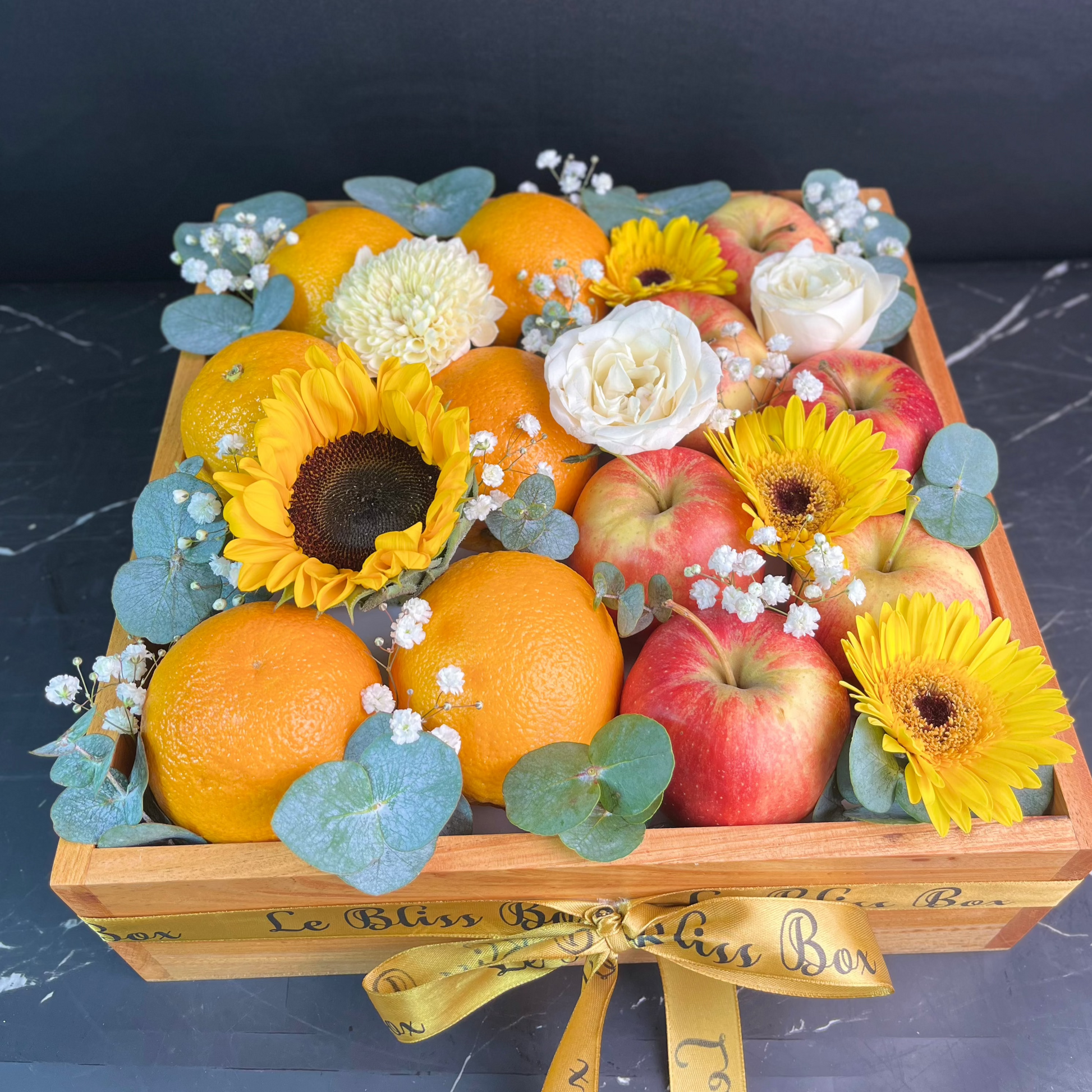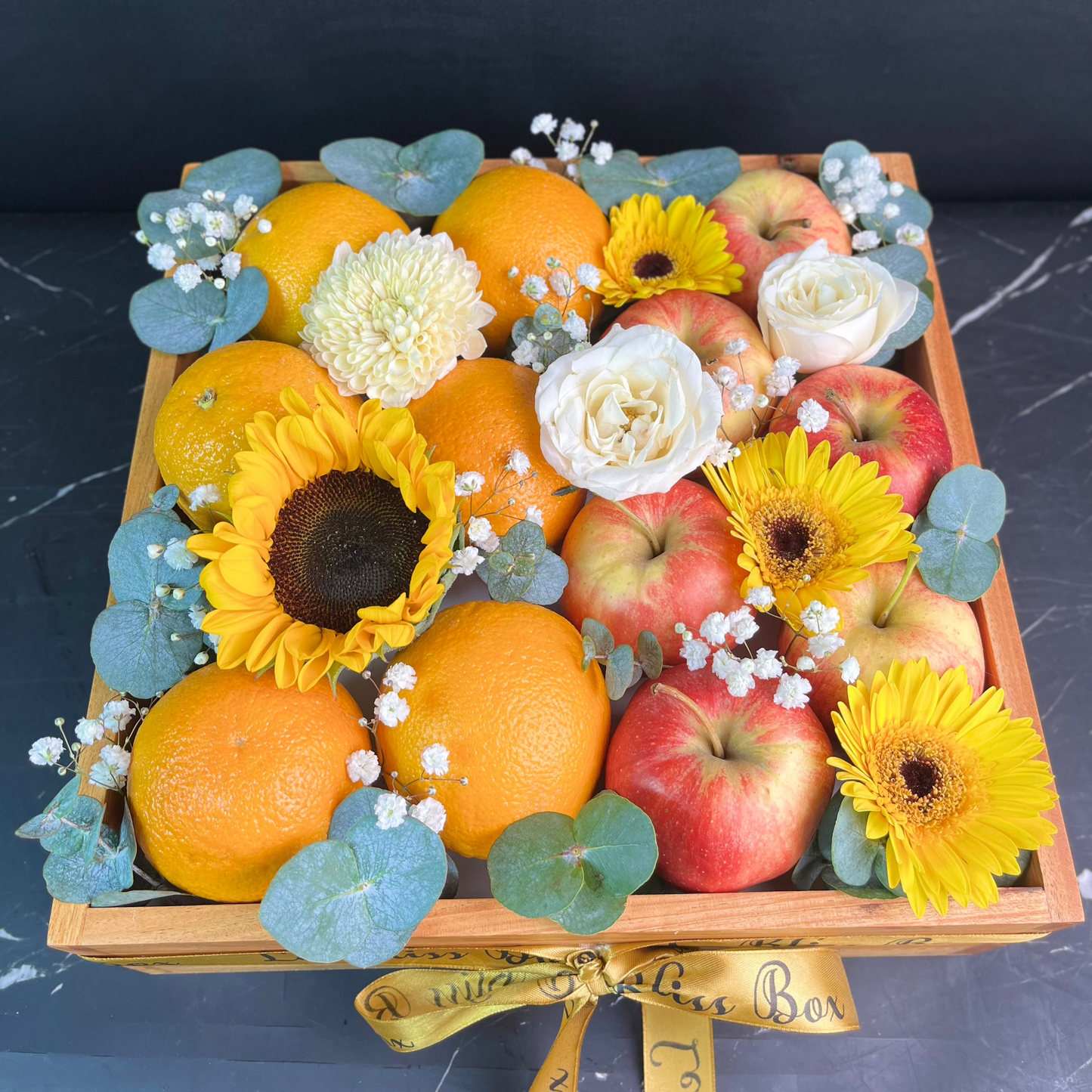 - toppings: Fresh sunflower, Gerbera, white rose, babysbreath