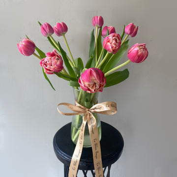 Introducing the Tulip Colombus Vase from Le Bliss Bouquet! Adorned with 10 exquisite TULIP Colombus flowers sourced from Holland, elegantly arranged in a vase, this stunning centerpiece is perfect for any occasion. Bring a touch of sophistication and natural beauty to your home or gift it to someone special. Shop now and elevate your space with the timeless charm of Tulip Colombus Vase.