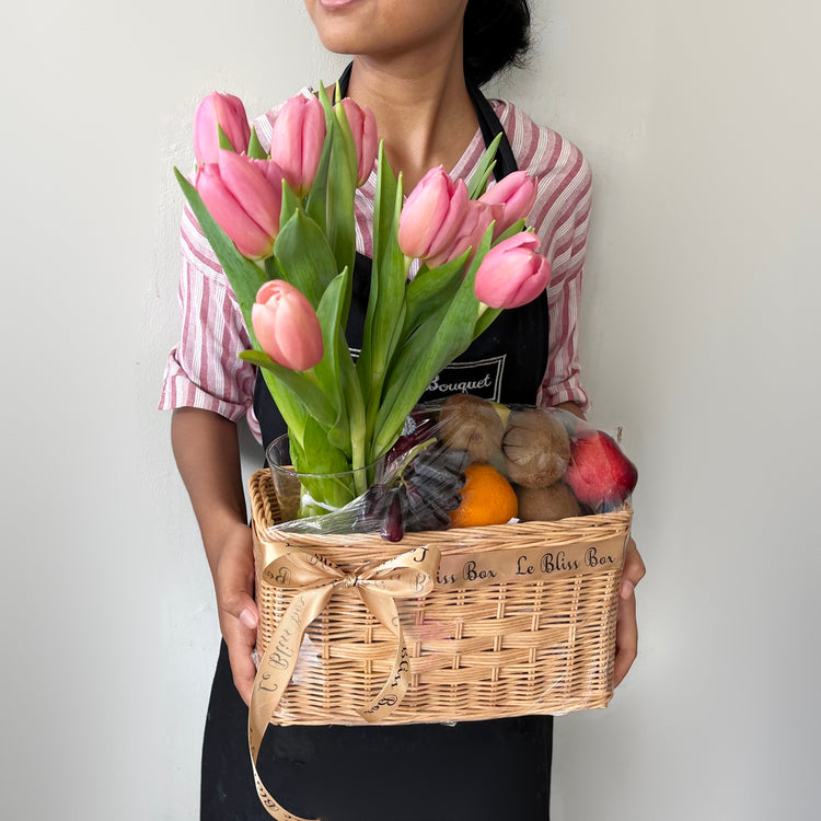 assorted 9 pcs imported fruits, 300gr grapes in rattan