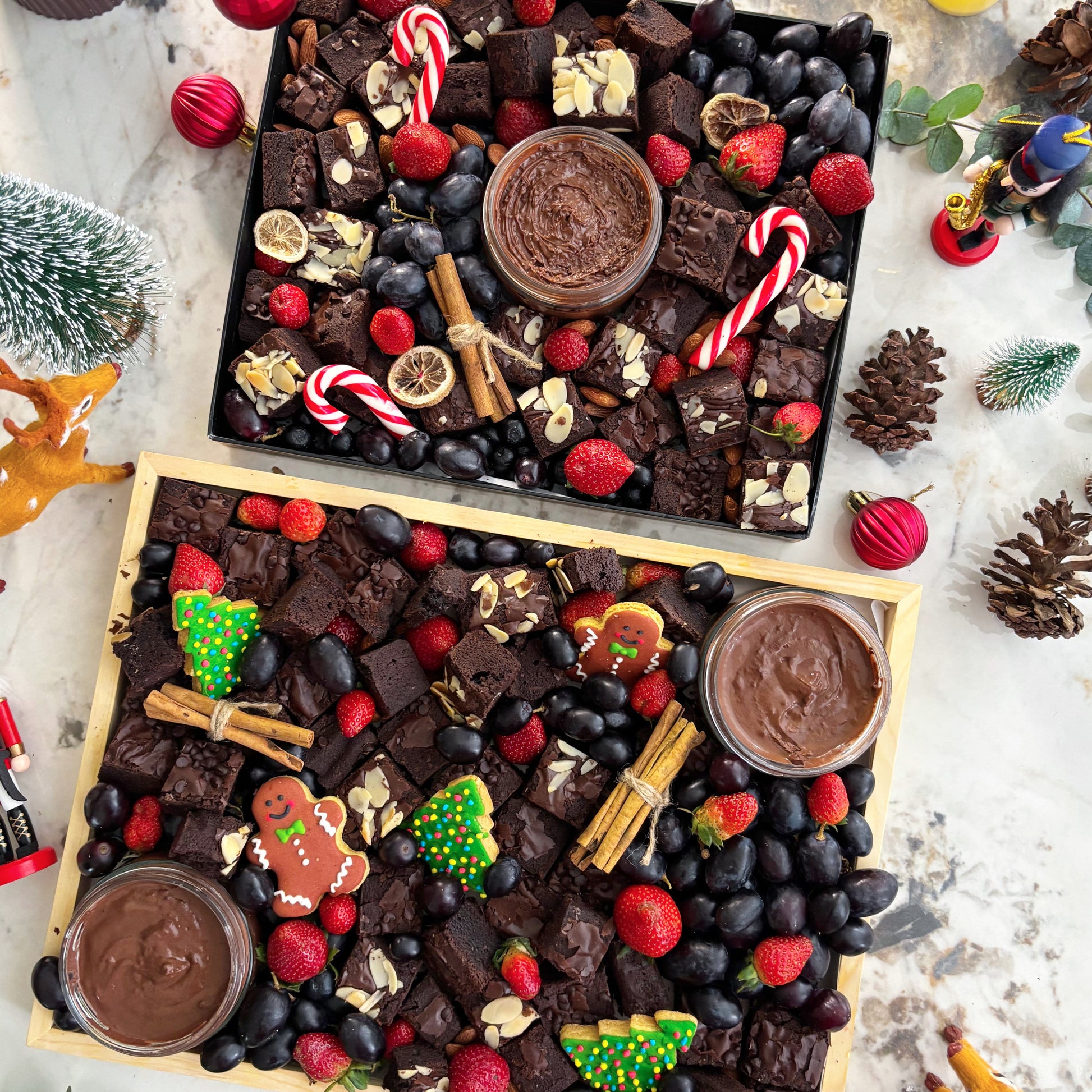 - 2 chocolate spread, Christmas tree cookies, gingerbread cookies, almond brownies, chocolate chip cookies, black grapes, almond